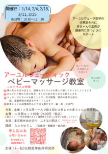 1月より都内で「アーユルヴェーディックベビーマッサージ教室」を開催いたします。